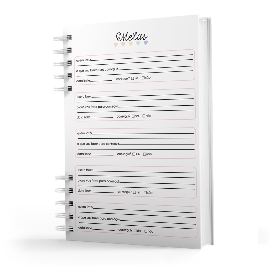 Com estrutura simples e método eficaz, este lindo Planner pode te ajudar a estar sempre à frente de tudo e alcançar suas metas e objetivos. Este Planner Permanente possui visão Semanal para organizar o seu ano inteiro Suas páginas coloridas dão vida ao seu dia a dia, tornando sua organização pessoal mais descontraída e divertida. A capa deste Planner é dura e também revestida com Bopp resistente a água, permitindo que limpe com um pano macio e úmido. Interior do Planner : * Dados pessoais e informações * Calendário * Planejamento anual * Metas * Datas Importantes * Minhas Listas * Minhas Séries * Viagens * Wish List * Roda da vida * Seu ano em pixels * Consultas * Controle Financeiro * Desafio 52 semanas * Visão semanal ( para o ano inteiro ) * Anotações Detalhes do Produto: Capa Dura - Revestimento Plástico ( Bopp) resistente a água. Acabamento: Fechamento com Elástico Encadernação: Espiral Aço Revestido Tamanho: A5 - 15,5 x 21cm Miolo: Colorido Páginas: 100 Gramatura: 75 g A qualidade e acabamentos dos materiais com certeza é um grande diferencial de nossos produtos, temos 12 anos no seguimento prezando pela satisfação de nossos clientes. Emitimos NF para todas as nossas vendas, sua compra aqui é garantida.