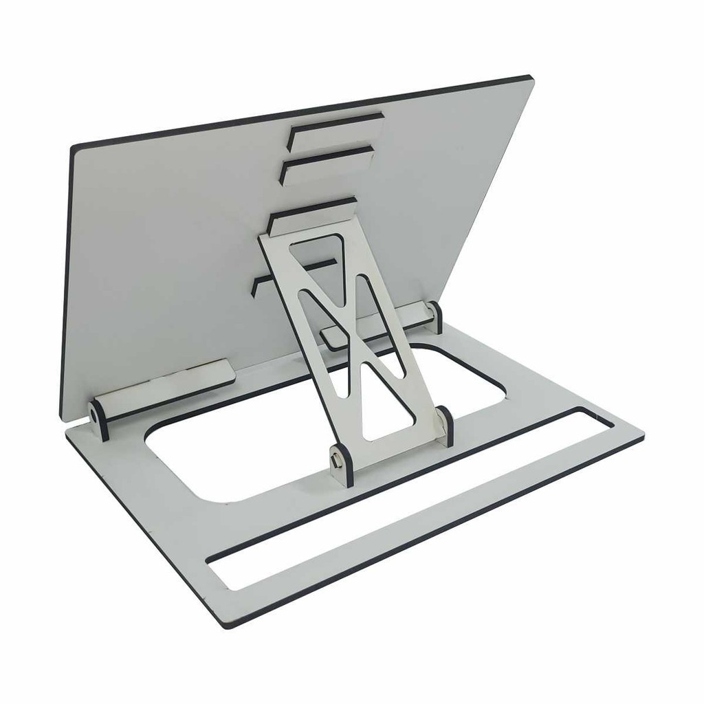 Mesa suporte inclinavel em mdf 6mm para estudos ou leitura. Fabricado atravéz de tecnologia digital de corte a laser, tem o tmanho ideal para diversas aplicações. Pratico e fácil, pode ser guardado em qualquer local tanto na horizontal como na vertical. Possui 5 níveis de regulagem de altura, se adequando a sua necessidade. Tamanho da área do suporte aproximado: 40x30x5cm