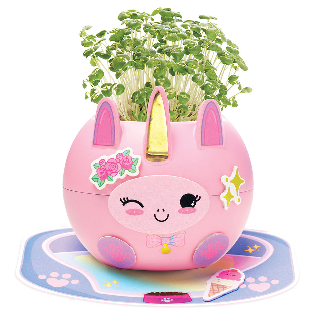 INMETRO 000942/2025 Plante e cuide do seu próprio coelhinho de grama! Com o kit Plant-a-pet Unicórnio, as crianças se divertem cultivando cabelo de grama em um simpático vasinho de coelho. O kit inclui materiais não tóxicos e testados em segurança, com tudo o que é necessário para semear e cuidar das sementes de grama natural. Uma atividade criativa que estimula a jardinagem, a paciência e o senso de responsabilidade. Detalhes: - Cultive diferentes tipos de jardim e descubra a magia da natureza e da ciência - Crie seu próprio miniecossistema, basta adicionar água para uma experiência única! - Experiência STEAM completa: as crianças aprendem sobre botânica e o ciclo de vida das plantas de forma prática e atrativa. - Estimula e curiosidade e encoraja a autonomia - Incentiva habilidades como cuidado, responsabilidade e paciência - Instruções inclusas - Contém: Vaso de unicórnio Mistura para vasos 11,6g Sementes 2,8g Adesivos fofinhos Conta-gotas Aviso: O conteúdo pode varias dos mostrados ou listados Risco de asfixia - Peças pequenas não são adequadas para crianças menores de 6 anos