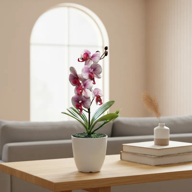 Planta Artificial Arranjo de Orquídea Vaso Oriental