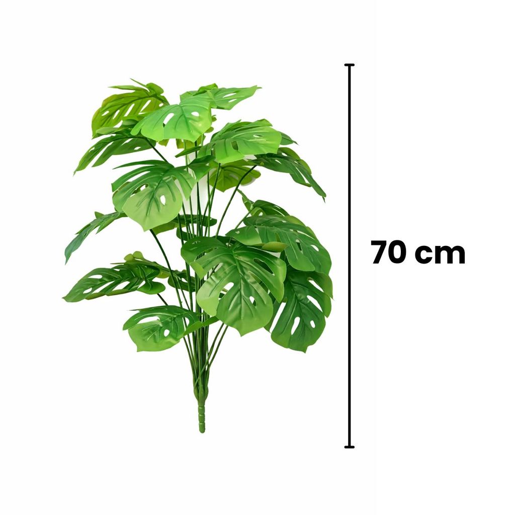 Costela de Adão com 24 Folhas Haste decorativa composta por folhas artificiais de Costela de Adão, conhecida pelo formato marcante e recortes característicos que trazem um visual tropical e sofisticado para a decoração. Suas folhas largas e detalhadas criam uma composição volumosa e elegante, valorizando diferentes tipos de ambientes. Com 24 folhas distribuídas ao longo da haste, a peça proporciona um visual cheio e natural, ideal para compor arranjos em vasos decorativos, jardins verticais, painéis verdes e decorações de interiores. A tonalidade verde intensa e o acabamento das folhas garantem um efeito ornamental moderno e versátil. Especificações: • Produto: Costela de Adão Permanente • Altura total: aproximadamente 70 cm • Quantidade de folhas: 24 folhas • Material: Plástico e arame • Uso indicado: Ambientes internos Produto não necessita manutenção e mantém sua beleza ao longo do tempo. As cores podem variar conforme a configuração do monitor ou tela. As medidas podem ter variação de até 2 cm para mais ou para menos. Verifique as dimensões antes da compra para garantir que o produto se adapte ao seu ambiente.