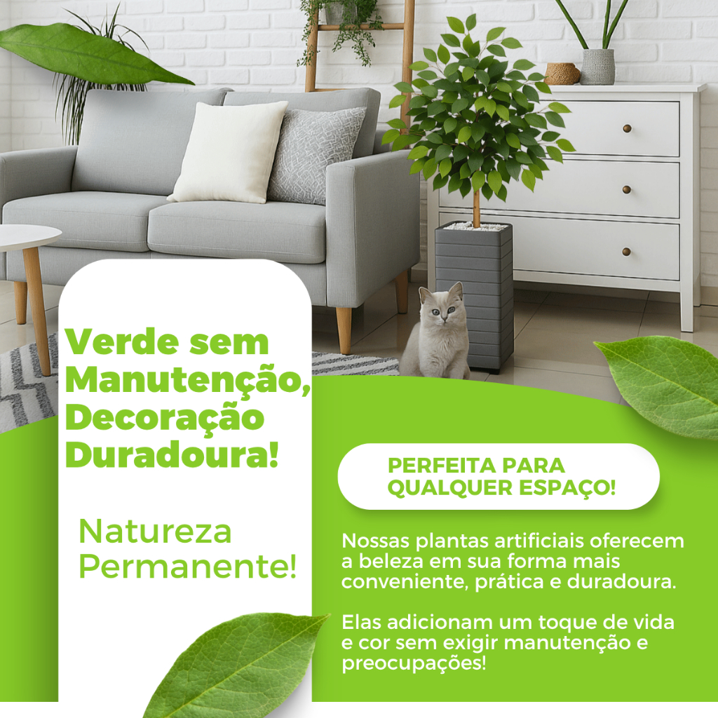 Se você gosta ou aprecia plantas, mais não tem tempo, costume ou anda distante da natureza? Nós da ANA LUCCIA temos a solução!! Decore sua casa, energize ao seu redor com aquela sensação de tranquilidade, relaxamento e aquele aconchego, aposte nas plantas artificiais realistas, acertando em cheio na decoração do seu lar, local de trabalho, aquele cantinho especial só seu, embelezando o seu ambiente. CARACTERÍSTICAS DO PRODUTO DIMENSÕES APROXIMADAS Altura total 90 cm Já com o vaso Altura Da Planta; 60 cm Altura Do Vaso; 30 cm