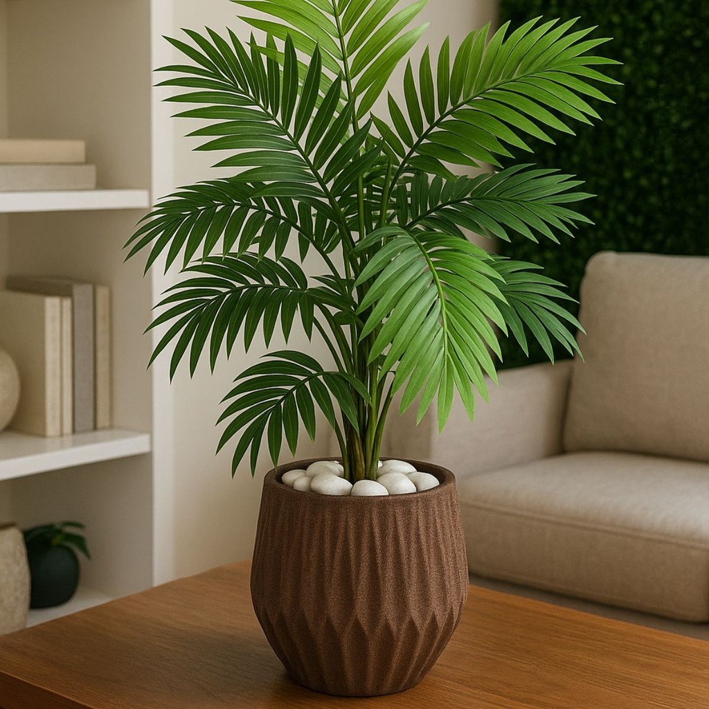 Planta Artificial Palmeira Com Vaso Origami Polietileno