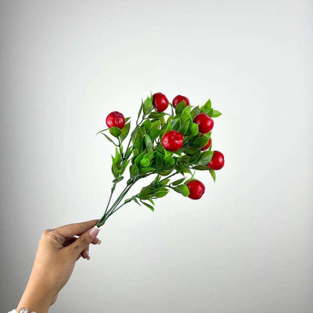 Planta Buquê Mini Frutas Cereja de Natal Artificiais para Decoração Casa Casamento - SD801571 CEREJA