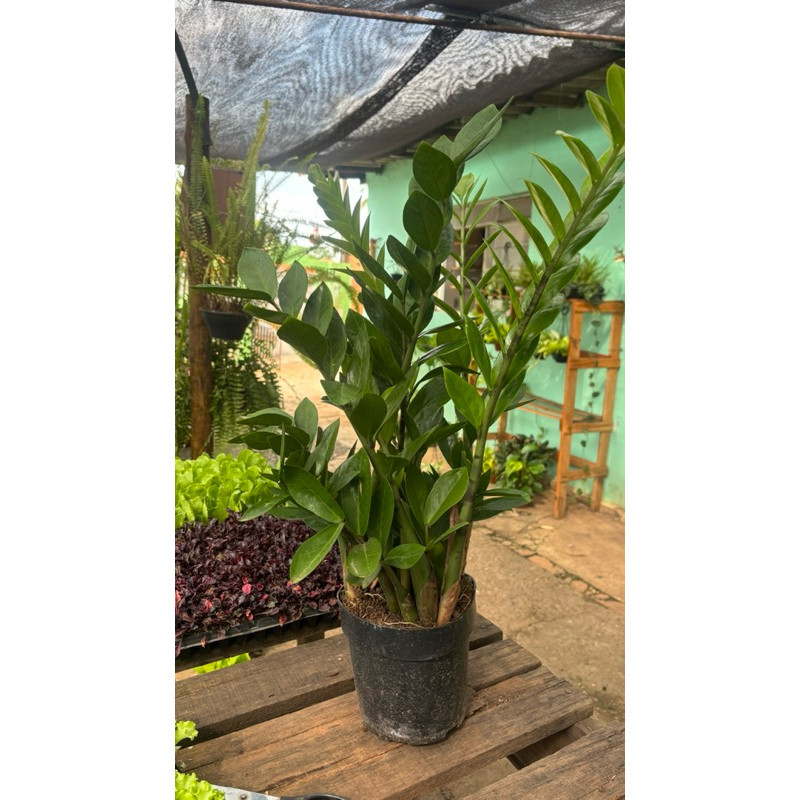 Planta ornamental natural da espécie Zamioculca, indicada para cultivo em ambientes internos. Espécie resistente e de fácil manutenção. Variações disponíveis: Zamioculca Verde aproximadamente 60 cm Zamioculca Verde aproximadamente 25 cm Zamioculca Black aproximadamente 25 cm A altura pode variar levemente conforme o lote. Características: Planta ornamental natural Enviada em vaso com substrato apropriado Indicada para ambientes internos Espécie de fácil cultivo Cuidados básicos: Manter em local com luz indireta ou meia sombra Evitar sol direto Regar moderadamente, sem encharcar o solo Utilizar substrato com boa drenagem Envio: Produto embalado adequadamente para transporte.