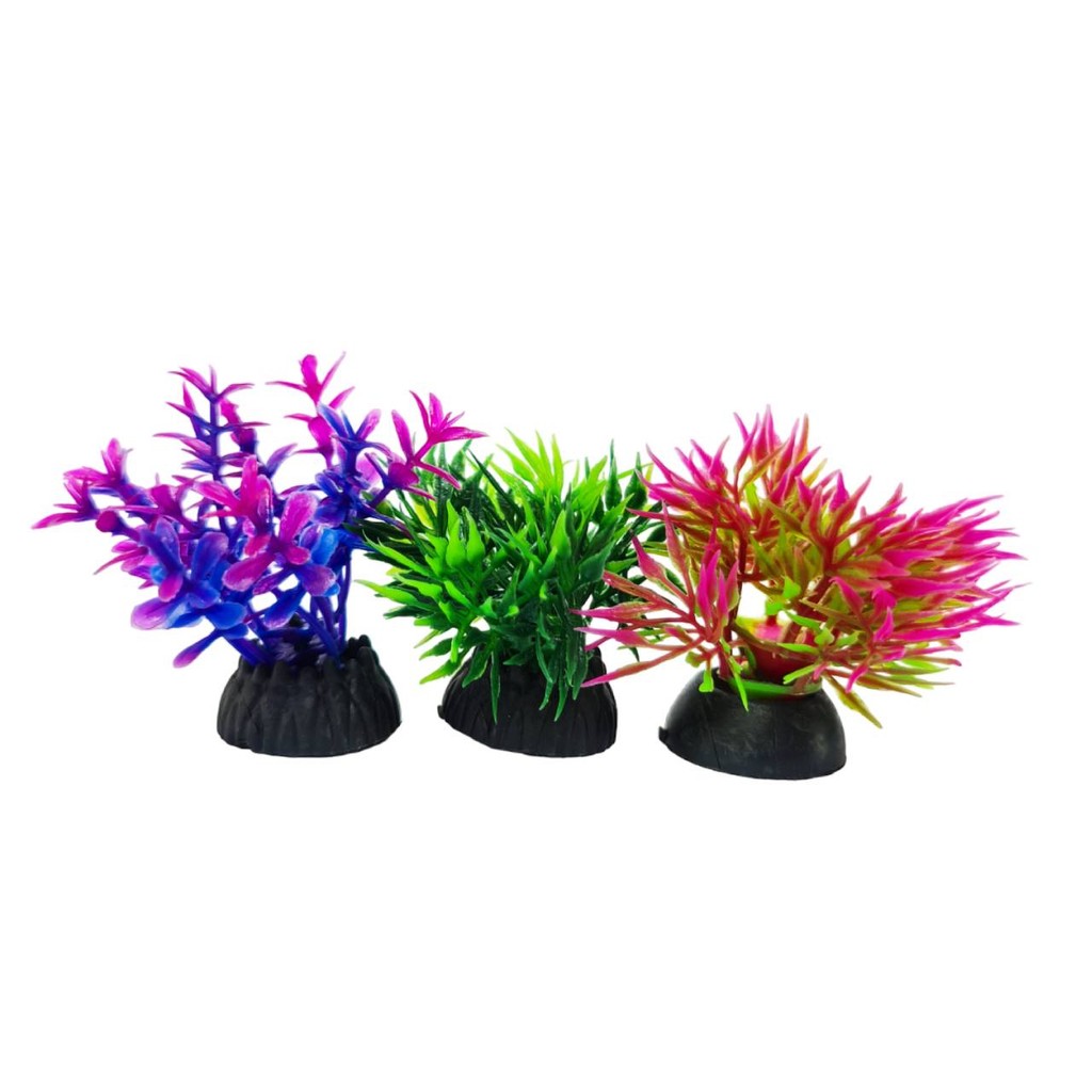 Plantinha Artificial para decoração de aquário pequeno, aquário de betta, beteira 3 unidades Fabricado em plástico colorido e base em resina atóxica. Perfeito para decoração de aquários. Cores e modelos conforme foto anúncio. - Escolha a Variação 1 Planta de 3 a 5cm Cor Verde Base de resina Material: Plástico Origem: China