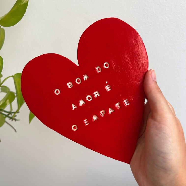 Plaquinha "Coração com Frase" em cerâmica fria! ❤️ Um coração feito à mão para lembrar que o amor é o que dá sentido a tudo 🫂🫶🏻 Uma peça cheia de significado, perfeita para trazer cor, afeto e personalidade a qualquer cantinho da casa ✨ 📏 Tamanho: 15 x 15cm 🎨 Esse produto possui as cores da imagem como padrão. Caso deseje alterar as cores ou a frase, nos envie uma mensagem em até 24h após a compra. 🪩 Nossos produtos são todos artesanais e feitos sob encomenda, o que torna cada peça única. Por isso, podem apresentar pequenas variações em relação à foto.