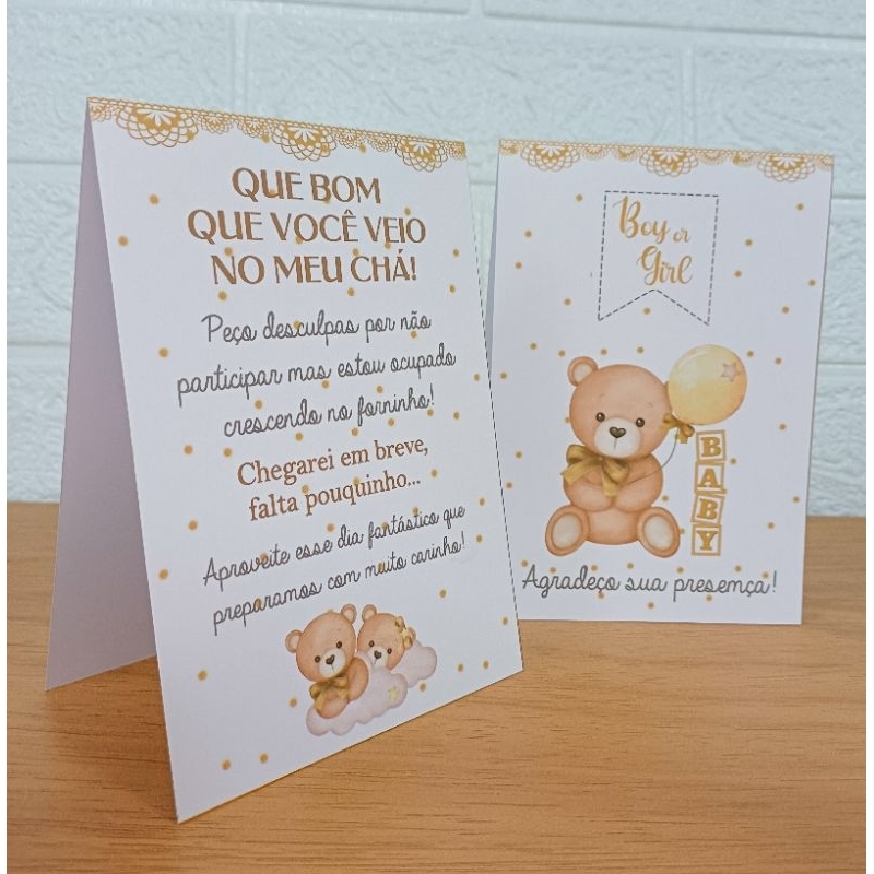 Plaquinha de agradecimento Centro de Mesa Chá Revelação Ursinho Neutro Boy or Girl