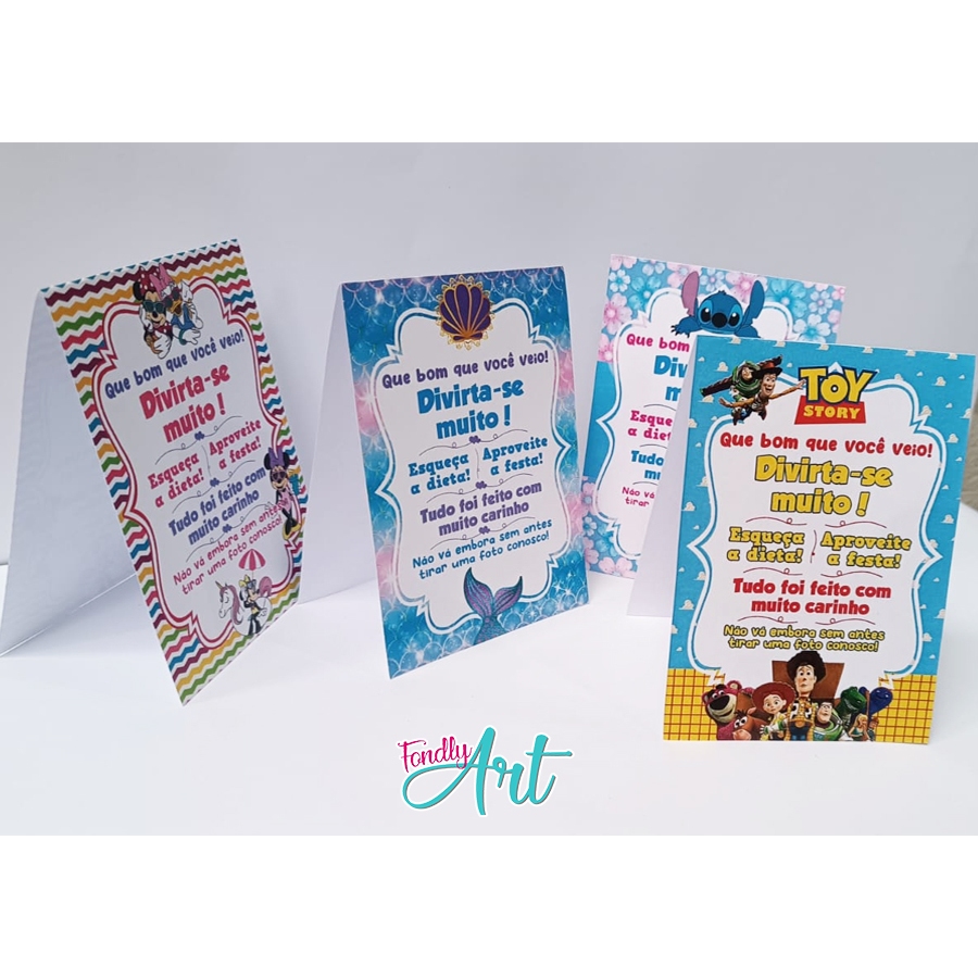 ⭐ Plaquinha de agradecimento - Centro de Mesa ⭐ 👉 10 A 40 unidades (escolha a quantidade no anuncio) 👉 Montamos a arte como você precisar! ✔️Medida: 10x14cm (já dobrado - de cada lado) ✔️Material: Papel offset 180 - Impressão a laser ✔️Temos a opção frente e verso iguais ou diferentes - Escolha no anúncio ⛔❌⛔ ATENÇÃO!! ⛔❌⛔ Enviar após a compra: Tema, nome e idade 👉 Certifique-se de enviar os detalhes para a personalização, ou seu pedido será enviado ❌SEM❌ personalização