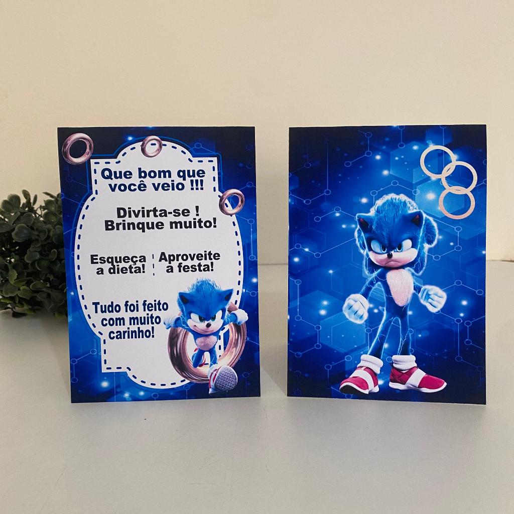 Plaquinha de agradecimento SONIC - Centro de mesa (produzimos todos os tema)