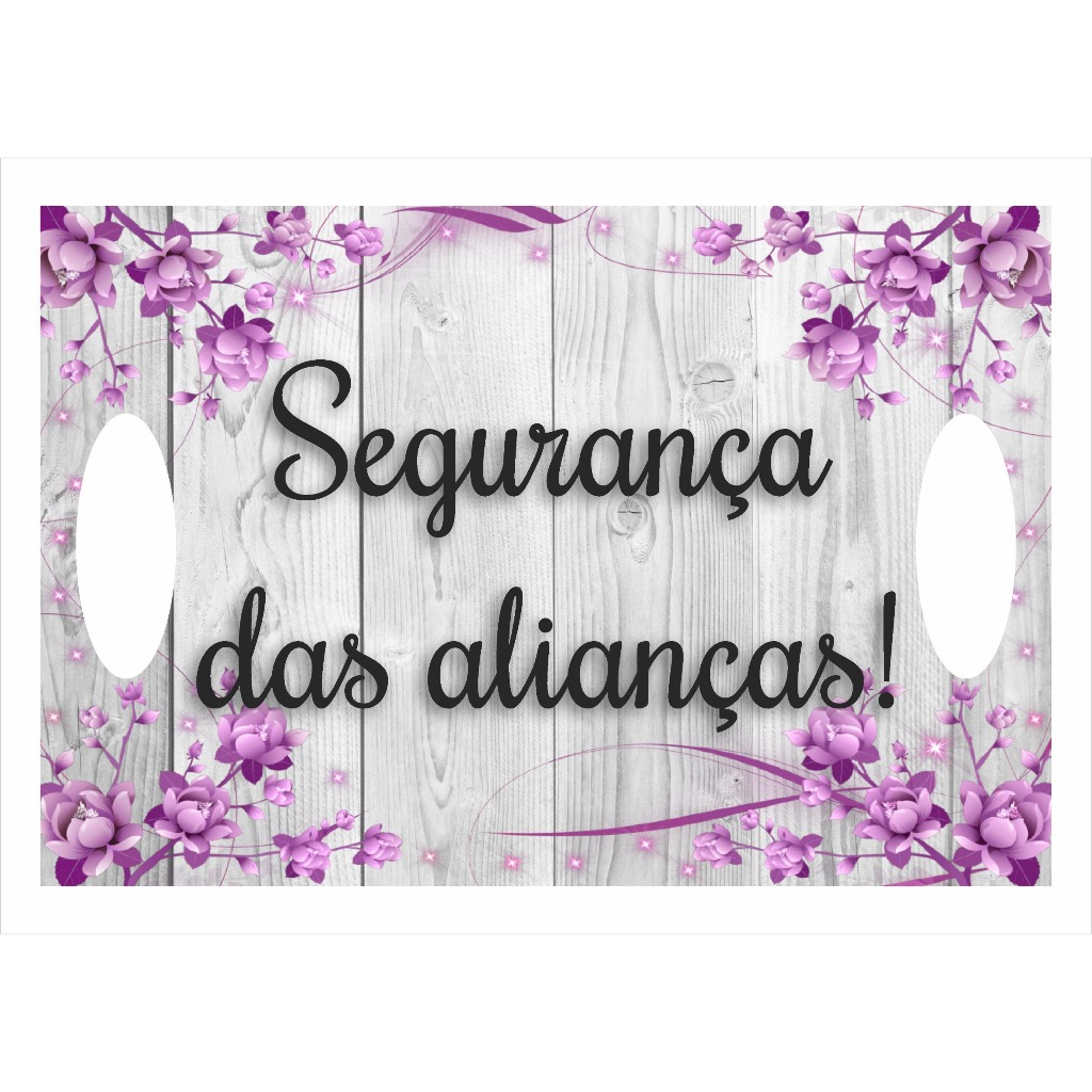 Plaquinha de Casamento com Suporte para Mãos Lá Vem a Noiva Decorativa Entrada Noiva Pajem Daminha