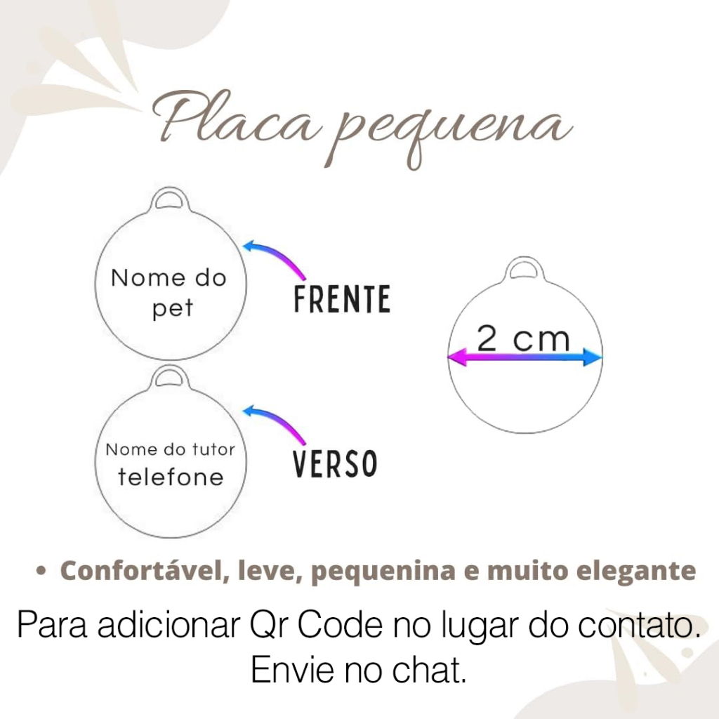 Plaquinha de Identificação Frente e Verso Gato Cachorro Nome Telefone Qr Code SinPatinhas