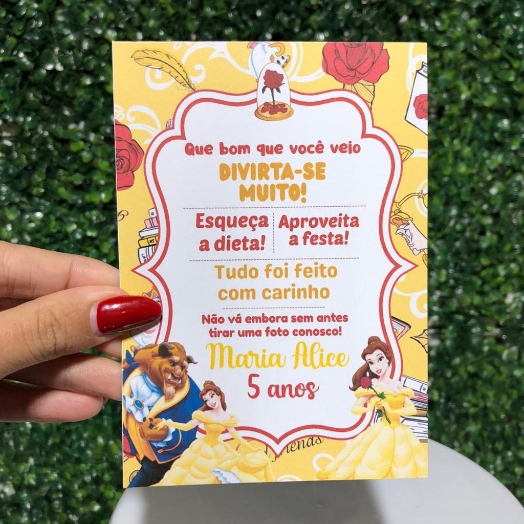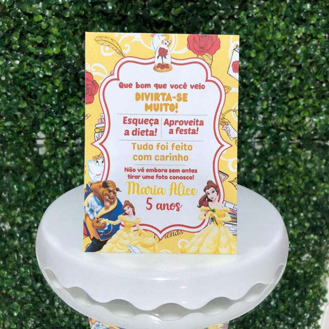 PLAQUINHA DE MESA ANIVERSARIO - A BELA E A FERA - PLAQUINHA AGRADECIMENTO - CENTRO DE MESA - DECORAÇÃO - FESTA