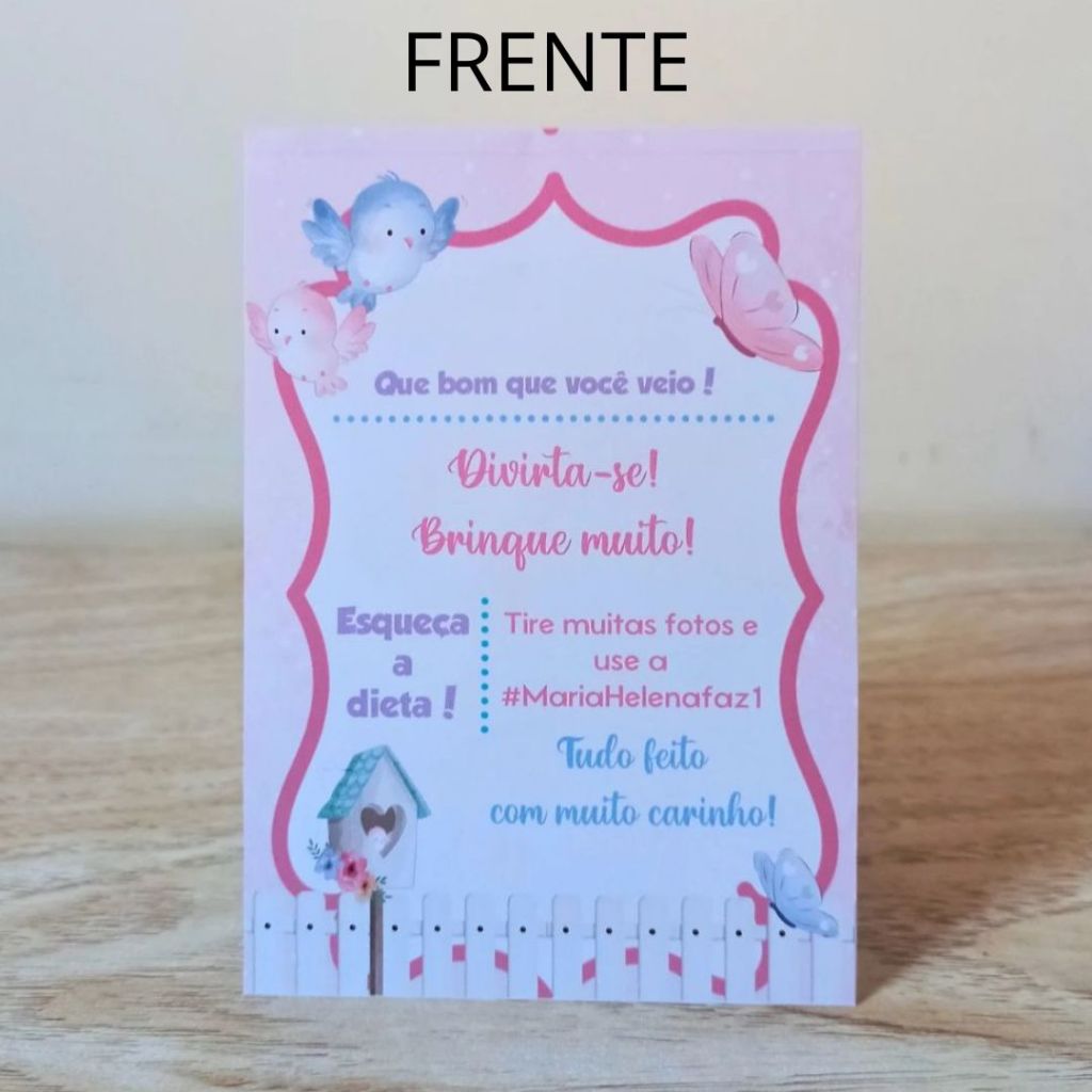 Plaquinha de Mesa Personalizada | Tema Jardim Encantado 🖼 Arte: Igual às fotos, personalizamos apenas nome e idade. 📄 Material: Papel Fotográfico 180g de alta qualidade, impressão com cores vivas. 📏 Tamanho: 10 x 14 cm (fechada). 🔄 Impressão: Frente e verso. ⏳ Prazo de Produção: 3 dias úteis (produto personalizado sob encomenda, sem pronta entrega). ✨ Como funciona a personalização: Após a compra, envie o nome e idade do aniversariante pelo chat ou no campo "mensagem ao vendedor". ⚠️ Atenção: Se as informações não forem enviadas IMEDIATAMENTE após a compra, o produto será enviado sem personalização. 🚚 Importante: Antes de finalizar sua compra, confira se o prazo estimado de entrega da Shopee atende à data do seu evento. Não nos responsabilizamos caso o prazo de entrega ultrapasse o dia da festa. 💬 Qualquer dúvida, fale conosco no chat. Estamos à disposição! 😉