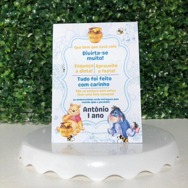 | PLAQUINHA DE MESA ANIVERSARIO - URSINHO POOH AQUARELA - PLAQUINHA A... este produto | R$ 16,50 | 25% | 5.0/5 | 5 |