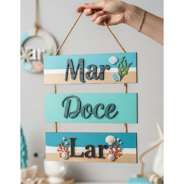 Plaquinha Decorativa Mar Doce Lar Casa Litoral Praia Pousada Hotel Decoração Frase MDF