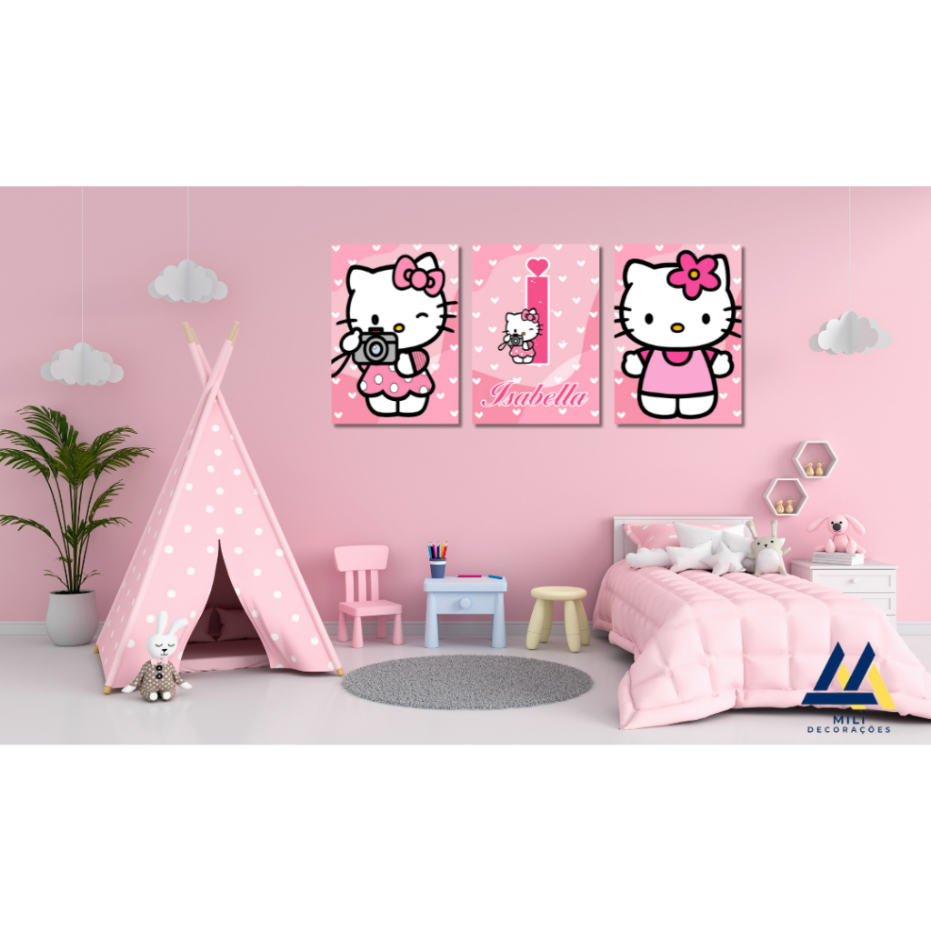 PLAQUINHA DECORATIVA PERSONALIZADA HELLO KITTY (medida 28.5x20) KIT COM 3 UNIDADE