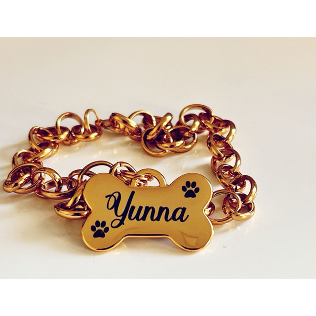 Plaquinha Dourada com correntinha de LUXO - Gravado Laser, Plaquinha de indetificação Para Cachorro e Gato