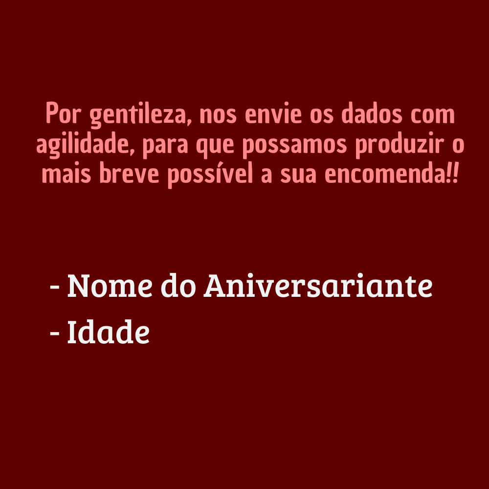 *TEMA CARROS Dados Técnicos - Medida do Cartão 10X14,5cm - Material do Cartão: Papel Papel Matte 230gramas (Não reflete luz) - Cartão de agradecimento (Sem Suporte, pois não necessita do mesmo) Modelo em "V" invertido DETALHES APÓS A COMPRA! Assim que a compra for realizada e o pagamento efetuado, pediremos os seguintes dados no chat: - Nome do Aniversariante - Idade (O texto pode ser alterado conforme o pedido do cliente) *Por gentileza, nos envie os dados com agilidade, para que possamos produzir o mais breve possível a sua encomenda!! Dúvidas Frequentes; P - Posso fazer alterações no texto? R: Sim, fazemos alterações e modificações no texto, acrescentamos frases e etc. É só nos informar no chat todas as modificações. P - Vocês enviam a prévia da arte antes? R: Sim, enviamos a prévia antes da produção. Mais assim que a prévia for enviada, ficamos no aguardo do OK ou de alguma modificação adicional até 2 horas depois que a pré visualização for encaminhada via chat! P - Posso adicionar a foto, Qr Code, @, cardápio ou número das mesas na plaquinha? R: Sim, adicionamos tudo, é só nos enviar todas as informações (Só não montamos o filtro do Qr)! P - Vocês montam qualquer tema? R: Sim, montamos e elaboramos qualquer tema, é só entrar em contato com a gente no chat. Caso tenha alguma referencia e inspiração de decoração, cores, figuras é só nos enviar. Pedimos sempre que entre em contato e faça a sua encomenda com um bom prazo, pois a produção e a elaboração da arte demorar um pouquinho devido a alta demanda na loja. Contamos com a sua compreensão! *ANTES DE REALIZAR A COMPRA, NOS CHAME PARA ESCLARECER AS SUAS DÚVIDAS!