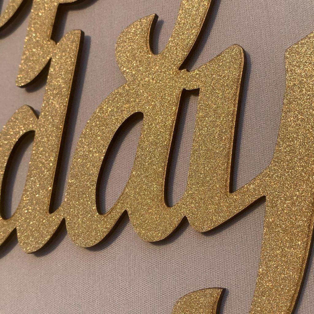 PLAQUINHA PLACA DECORAÇÃO ANIVERSÁRIO LETREIRO HAPPY BIRTHDAY DOURADO BRILHANTE GLITTER