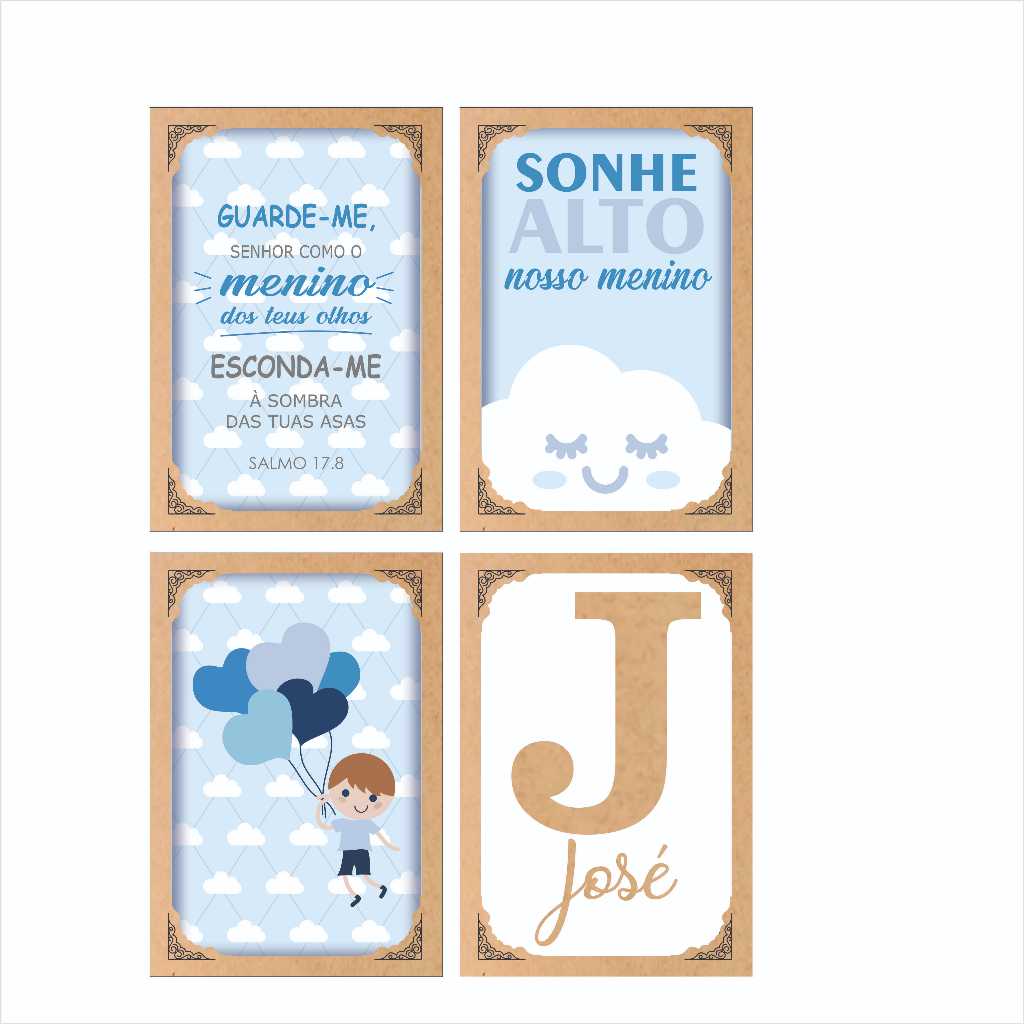 Plaquinhas Decorativas 3 Peças Sonhe Alto Nosso Menino Azul