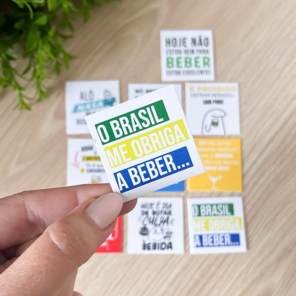 🥂 Kit Tags Divertidas para Taças de Drinks e Bebidas | Papel Couchê 300g | 4x4cm ⚠️ Atençao: São 10 Modelos Diferentes, comprando 100 ou 400 unidades você vai receber 10 modelos. ✔️ Não Personalizamos, Nossos produtos são todos a pronta entrega com envio, Imediato. 😄 Transforme qualquer drink em motivo de risada com essas tags criativas e engraçadas para copos e taças! Ideal para festas, churrascos, confraternizações e eventos em geral, essas plaquinhas são perfeitas para dar um toque de humor e personalidade à sua bebida. ✨ O que vem no kit: ✨ Temos Kits de 100, 200, 300, e 400 Tags. No kit de 100 Acompanha 10 Unidades de cada frase. No kit de 200 Acompanha 20 Unidades de cada frase. No kit de 300 Acompanha 30 Unidades de cada frase. No kit de 400 Acompanha 40 Unidades de cada frase. Tamanho: 4x4cm (ideal para taças, copos, garrafas) Impressão colorida em papel couchê 300g (firme e resistente) ❗️ Não Acompanha mini prendedores! 😄 Frases das tags: ✔️ Alô NASA – Hoje quem decola é nóis! ✔️ Hoje não estou bem para beber – Estou excelente! ✔️ Esse copo é invisível – Só se quem vê é cachaceiro! ✔️ Só bebo em 2 ocasiões – Quando é meu aniversário e quando não é. ✔️ É proibido entrar bêbado – Sair pode! ✔️ Você está bêbado? – [ ] Sim [ ] Não ☑️ ✔️ Eu não tenho problema com a bebida – Eu e ela nos damos super bem! ✔️ Larguei a bebida – Só não sei onde. ✔️ Hoje é dia de botar a culpa na bebida ✔️ O Brasil me obriga a beber... 🎊 Ideal para: Decoração de festas e eventos Marcar e identificar taças de forma divertida Quebrar o gelo e arrancar boas risadas Presentes criativos e lembrancinhas 🛒 Compre agora e leve diversão e originalidade para seu evento com esse kit exclusivo! Perfeito para quem ama beber... com estilo! 🍹🍻 📦Envio em no Maximo 24h Úteis.