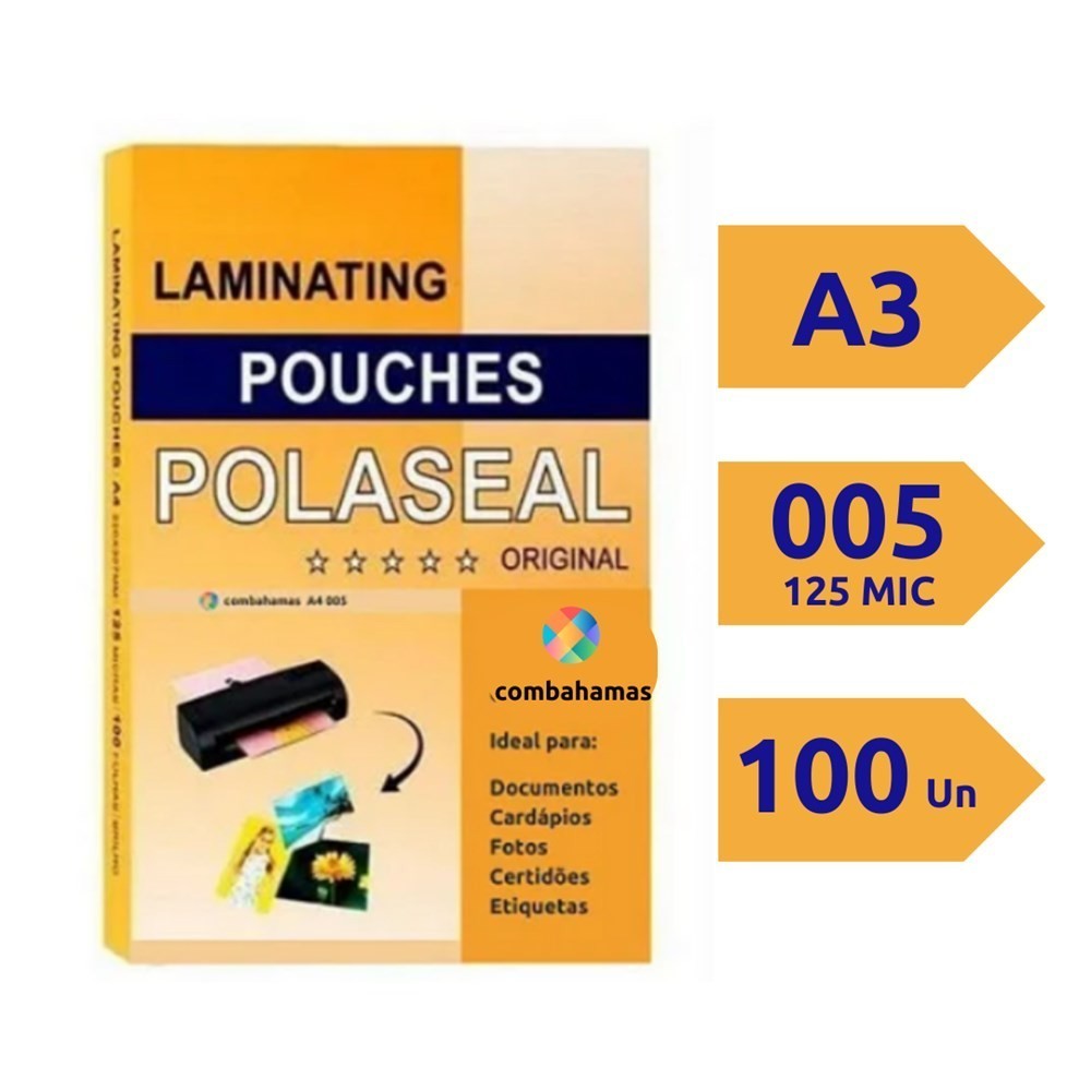 PLÁSTICO PARA PLASTIFICAÇÃO, POLASEAL - A3, 303x426X05 - 100 UN