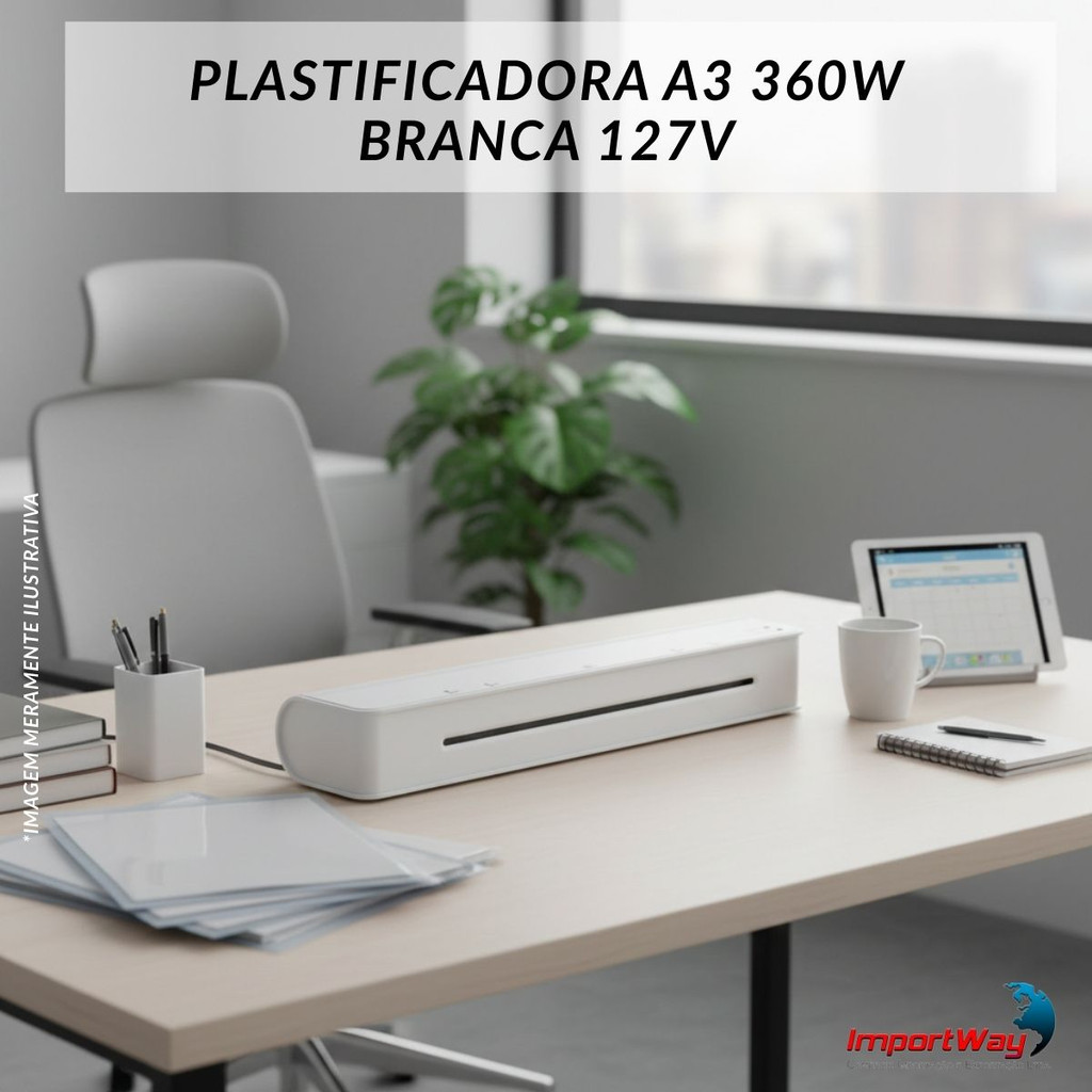 Plastificadora A3 360w 127v Documentos Escritório Branca Importway A solução ideal para proteger e conservar documentos, fotos, certificados e materiais escolares ou corporativos. Indicada para uso em escritórios, escolas e residências, proporciona acabamento uniforme, garantindo maior durabilidade contra umidade, sujeira e desgaste do tempo. Especificações: • Marca: Importway • Modelo: IWE014 • Potência: 360W • Voltagem (IWE014): 110-120V/60Hz Corrente: 3.0A • Tempo máximo de plastificação: 3 minutos • Largura máxima de laminação: 330 mm • Espessura máxima de laminação: 0,6mm • Velocidade máxima de laminação: 250mm/min • Botão frio e quente • Tempo de aquecimento: 3 a 4 minutos • Rolos: 2 unidades Conteúdo Embalagem: - 01 Plastificadora A3 360w 127v Documentos Escritório Branca Importway "Compra Garantida" - Ao Comprar conosco a sua compra é 100% garantida, o seu dinheiro está seguro até a entrega. *Imagens meramente ilustrativas Importway Importando Soluções com Qualidade, Inovação e Responsabilidade desde 2007.