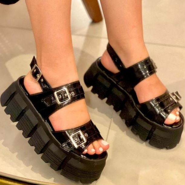 Plataforma Feminina Sandália Alta 5.5 CM Flat Moderna Lançamento Promoção KALLYS 0245