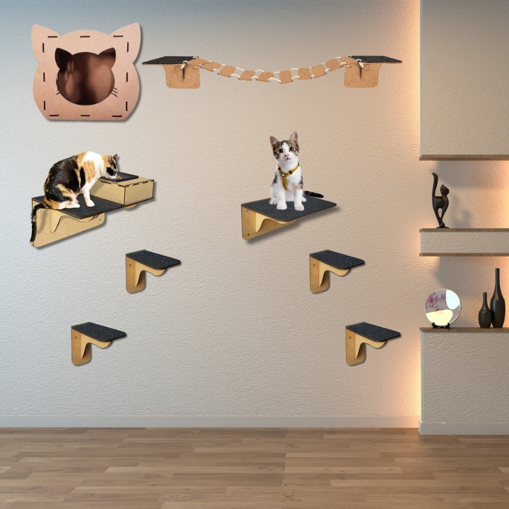 Playground brinquedos para Gatos 8 Peças com arranhador e comedor nicho ponte degrau rede brinquedo feito em mdf