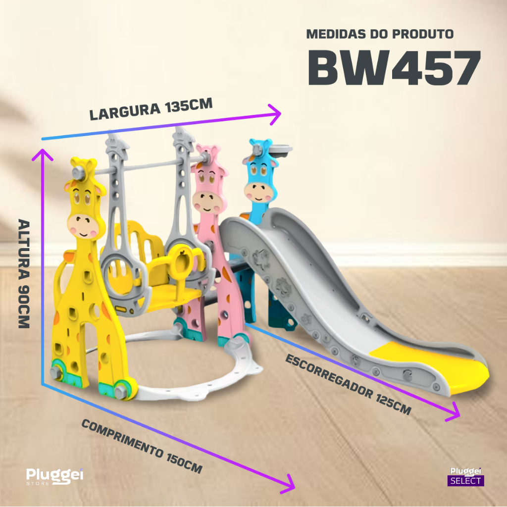 Playground Infantil Kids Multifunções Brinquedo com Escorregador Cesta Basquete Balanço Telescópio - Pluggei Select Playground Infantil Brinquedo Kids com Escorregador Cesta Luneta e mais - Pluggei Select ATENÇÃO: Todos os modelos servem para idades igual ou acima de 3anos ATENÇÃO: Leia a descrição atentamente para garantir que você fará a escolha certa do seu produto! Vem descobrir com a gente essa maravilha que é esse playground infantil da Pluggei Select! Disponível nas cores bege e laranja/azul, ele é PERFEITO para o seu pequeno brincar, contando com até 5 atividades diferentes que podem ser realizadas! A criança pode escolher se divertir no escorregador, jogando basquete, guardando brinquedos na cesta, olhando através do telescópio ou atravessando o túnel, estimulando assim sua criatividade, imaginação e tomada de decisões. Funciona assim, você escolhe o modelo e a cor do seu playground, faz o pedido, e aproveita para criar memórias e curtir o dia com o seu filho(a) com esse produto nº 1 em atividades infantis! CARACTERÍSTICAS DO PRODUTO: - Marca: ImportWay by Pluggei Store - Possui atividades diferentes para serem realizadas. - Tamanho adequado para o seu pequeno aproveitar de montão! - Design lindo e moderno. - Indicado para crianças a partir de 3 anos. - Peso máximo indicado: 36kg. DIFERENÇAS ENTRE OS MODELOS: Modelo 5 funções: - Possui escorregador, basquete/cesta, luneta e túnel (1 de cada). - Disponível apenas na cor bege Modelo 4 funções: - Possui escorregador, basquete/cesta, luneta e espaço multifuncional interno (1 de cada). - Disponível nas cores bege ou laranja/azul. Modelo 3 funções: - Possui escorregador, basquete/cesta e balanço (1 de cada). - Disponível nas cores Girafa Multicolor. MEDIDAS DO PRODUTO: Modelo 5 funções: - Comprimento total do produto: 177cm - Largura total do produto: 148cm - Altura total do produto: 98cm Modelo 4 funções: - Comprimento total do produto: 176cm - Largura total do produto: 86cm - Altura total do produto: 66,5cm Modelo 3 funções: - Comprimento total do produto: 150cm - Largura total do produto: 135cm - Altura total do produto: 90cm Inclui: - 1 Playground Infantil 3x1 ou 4x1 ou 5x1. Imagens ilustrativas. As tonalidades das cores podem variar levemente. Os produtos são medidos manualmente, podendo haver pequenas variações nas medidas. Dependendo do lote, o revestimento de plástico do produto pode vir ou não com pequenas marcações. As imagens que constam a nossa marca Pluggei Select são apenas ilustrativas, para proteção de direitos autorais de imagem.