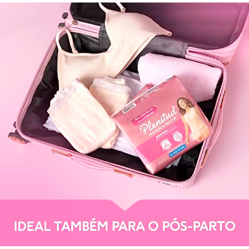 Validade 06/03/2027 Roupa intima Plenitud Femme foi desenvolvida para a rotina ativa das mulheres. Com ajuste ao corpo como calcinha, controle de odor e absorção 5x maior do que um absorvente regular, ela proporciona proteção e discrição que as mulheres precisam para seu dia a dia ativo. Pode ser usado diariamente e sempre que necessário. CIRCUNFERENCIA P/M = 86 - 117 cm G/XG = 112- 137 cm