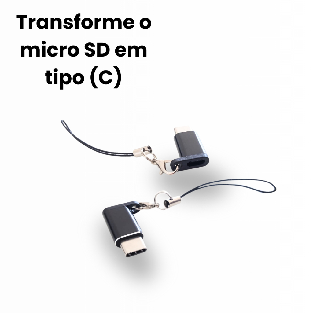 Plug Adaptador Micro-USB V8 Fêmea para USB Tipo-C Macho Chaveiro Adaptador