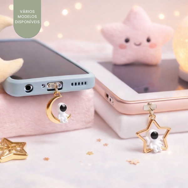 Plug Protetor Poeira, ESCOLHER ENTRE MODELOS Tipo C ou Lightning ou Micro USB - Pingente Celular, Kindle, Tablet, Fone