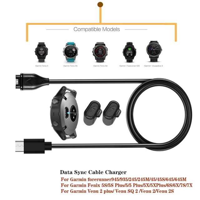 Plugue Contra Poeira + Carregador De Cabo De Dados USB Para Garmin Venu Sq 2 3 4/Vivoactive 5 6/Fenix 5S 5X 6S 6X 7S 7X/