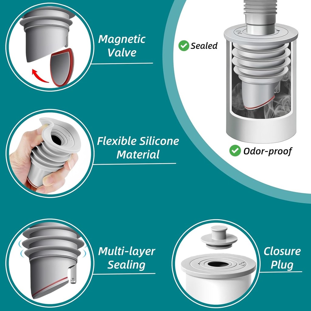 🚿🧼O pacote inclui ✅Plugue de vedação de mangueira de drenagem de Silicone 1 x plugue de vedação de mangueira de drenagem de Silicone 🚿🧼Informações do produto ✅Material: silicone Durável ✅Tamanho da figura: P/M/L/XL (Como mostrado na figura) ✅Cor: Cinza ✅Função de função: Anti-odor, anti-traseiro, vedação ✅Aplicação: Máquina de lavar, drenagem de piso, tubo de esgoto, pia 🚿🧼Características dos recursos ✅ Válvula magnética Anti-Odor】Válvula magnética de fechamento automático evita que maus cheiros subam através do drenagem ✅Fácil de instalar】Sem necessidade de ferramentas – simplesmente empurre e use ✅Funciona com a maioria das mangueiras de drenagem da máquina de lavar e drenagem Universal】 Funciona com a maioria das mangueiras de drenagem da máquina de lavar e drenos de piso ✅Prevenção de refluxo de água】Blocos de insetos, gases e água suja efetivamente ✅ Flexível e durável】Feito de silicone de alta qualidade para uso duradouro ✅ Escolha o tamanho certo】Meda o diâmetro interno do seu tubo antes de comprar para melhor desempenho de vedação