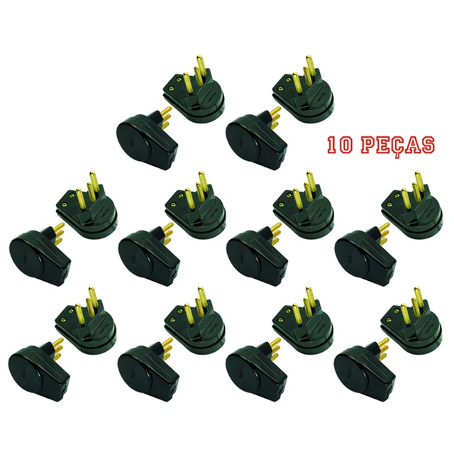 | Kit 10 Plugues Machos 2P+T 10A 250V Axial Preto Prensa Cabo | R$ 240,84 | — | 5.0/5 | — |