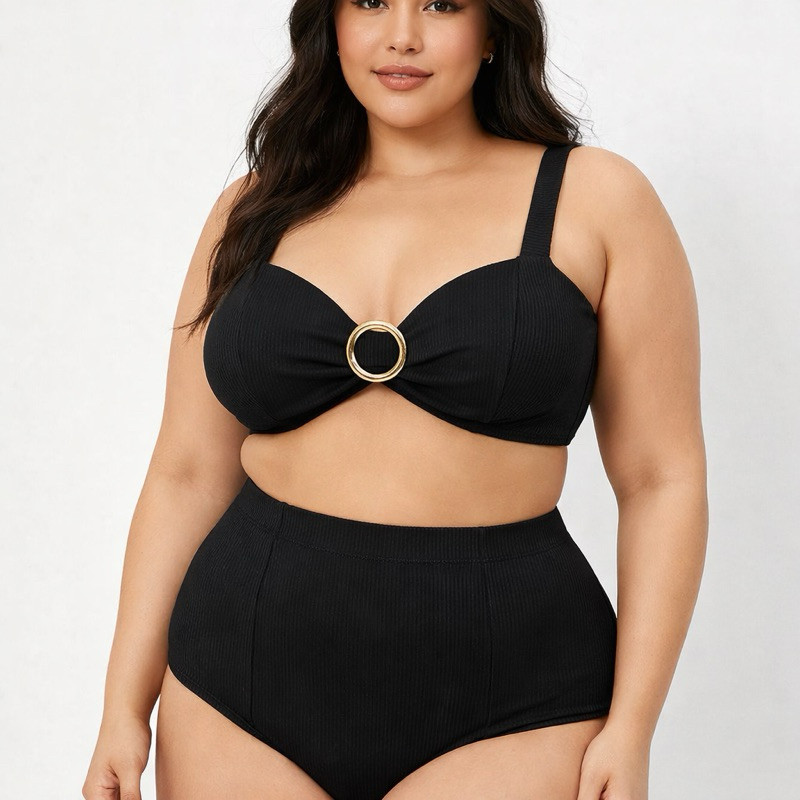 PLUS SIZE Biquini feminino básico confortável reforçado argola fivela dourada preto liso hot pant
