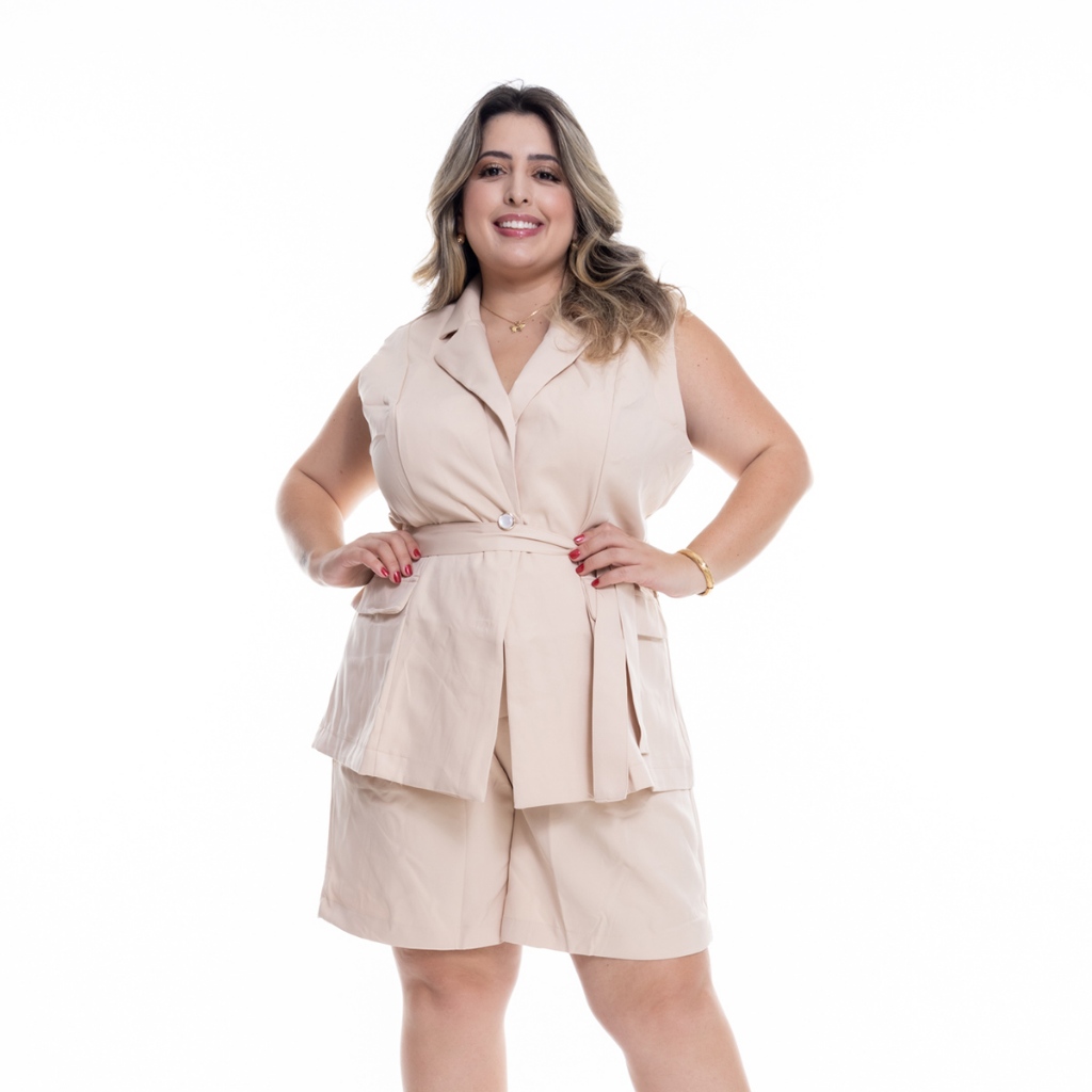 Plus Size G1 AO G3 Conjunto Feminino Blazer Colete e Short com cos elástico .HBD-CONPL-051