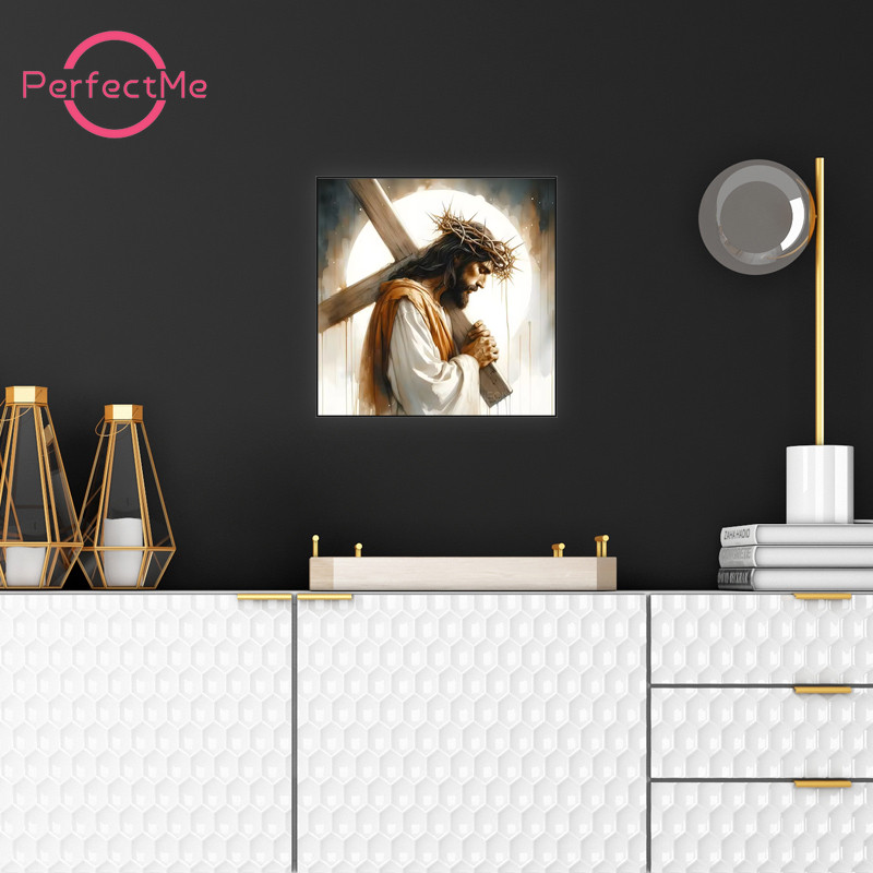 PM Figura Religiosa Jesus 5D Conjunto De Pintura De Diamante Ponto Cruz De Cristal Completo Decoração De Parede Para Cas