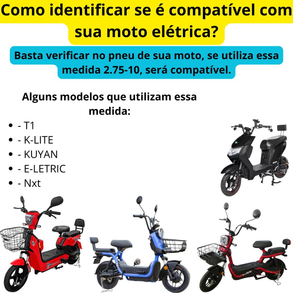 | Pneu 2.75-10 Aro 10 Para Scooter Bike Moto Elétrica Até 100kh/h Tub... este produto | R$ 204,90 | — | 5.0/5 | — |