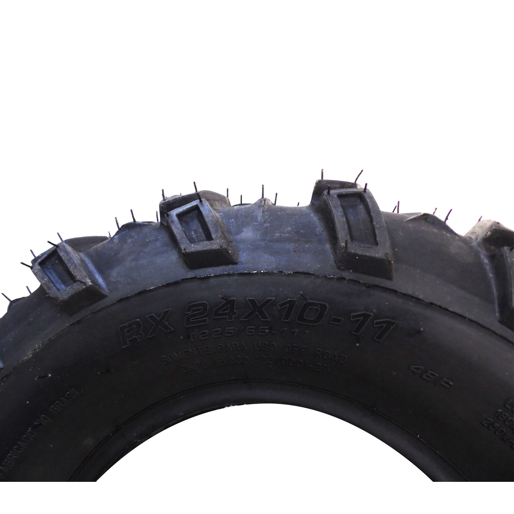 BUSCOU PNEUS - TUDO PARA PNEUMÁTICOS CONTEUDO DA EMBALAGEM 01 PNEU ENTRETENIMENTO QUADRICICLO 24X10-11 RX TIRES RX Tires uma empresa brasileira de pneus de alta complexidade focada em qualidade, durabilidade e desempenho - Aplicações principais: Quadriciclo Honda Fourtrax, Quadriciclo PRO ATV 250cc - Ficha Técnica: Peso: 7,825 Kg Carga Max: 150 Kg Lonas: 4 Lonas Câmara: Não Pressão Máxima Sugerida (PSI ou LB): 40 Velocidade Máxima: 80 km/h (Respeitando as orientações do fabricante.) Obs. Uso para fora da estrada (NÃO RECOMENDADA A UTILIZAÇÃO EM VIA ASFALTICA). Comprimento: 570 mm Altura: 570 mm Largura: 245 mm *GARANTIA DE 12 MESES ESTOQUE PARA ENVIO IMEDIATO PRODUTO NOVO *PRODUTO NOVO C/ GARANTIA DE 12 MESES CONTRA DEFEITOS DE FABRICAÇÃO *Nossa equipe está sempre disposta a tirar suas dúvidas, basta nos chamar no campo das perguntas. BUSCOU PNEUS – SÃO BERNARDO DO CAMPO - SP