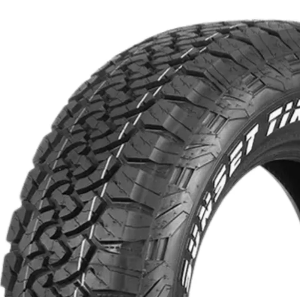 Tamanho: 265/60R18 Modelo: All-Terrain T/A OWL Marca: Sunset Quantidade: 1 Run Flat: Não Índice de Carga: 110 (1060Kg) Índica de Velocidade: T (190Km/H) UTQG (Treadwear): 400AB Índice de Durabilidade: 400 Índice de Tração: A Índice de Temperatura: B Tipo de Terreno: AT Tipo de Construção: Radial Uso: Sem Câmara -------------------------------------------------------- Antes de finalizar a compra, confira as medidas que seu veículo está utilizando atualmente! Aguardamos a sua compra! -------------------------------------------------------- * NÃO ACOMPANHA ARO -------------------------------------------------------- Garantia de 5 anos somente por defeitos de fabricação, ficando inválida em caso de danos por acidentes, buracos na pista, mau uso e ainda má instalação. É necessário e indispensável instalar o pneu com um profissional especializado."