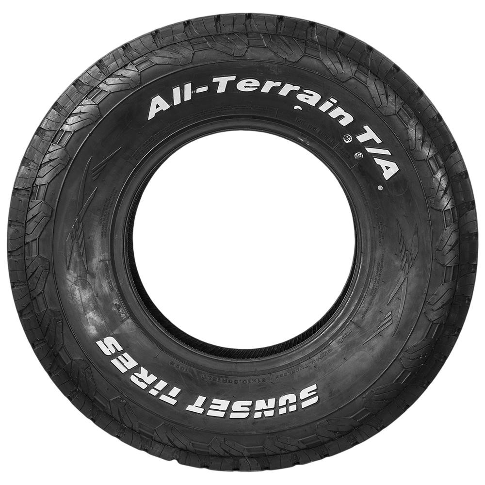 Pneu 31X10.5R15 LT 6 Lonas 109S All Terrain TA Sunset (Letras Brancas) Marca: Sunset Modelo: All Terrain TA Aro: 15 Lonagem: 6 Lonas Índice de peso (por pneu): 109 - 1030Kg Índice de velocidade: S - 180km/h Construção: Radial Tipo: Sem camara Aplicação: Terra Tipo de desenho: Simetrico Lateral: Letras brancas