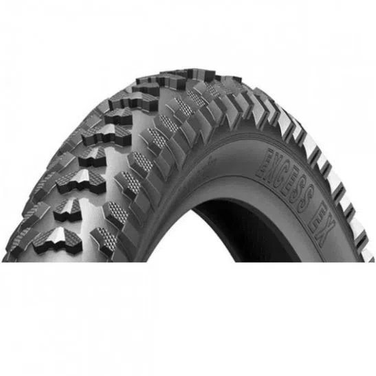 O alinhamento de seus blocos centrais e laterais foram pensados para proporcionar maior tração em pisos mistos. - Marca: Levorin - Modelo: Excess EX (Borrachudo) - Medida: 26x1.75 - Modalidade: Projetado para andar em qualquer tipo de terreno. - Cor: Preto - Máxima Inflação: 36 PSI. - Peso de cada pneu aproximado: 720g