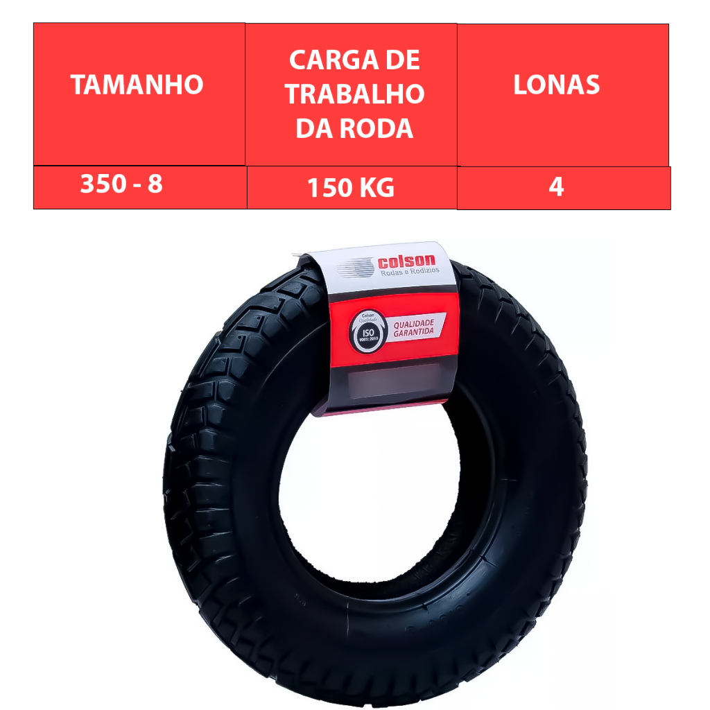Pneu Carrinho De Mão Carriola 2 Ou 4 Lonas Super Resistente 3.25 X8Pol. 100kg Obras Construção Massa