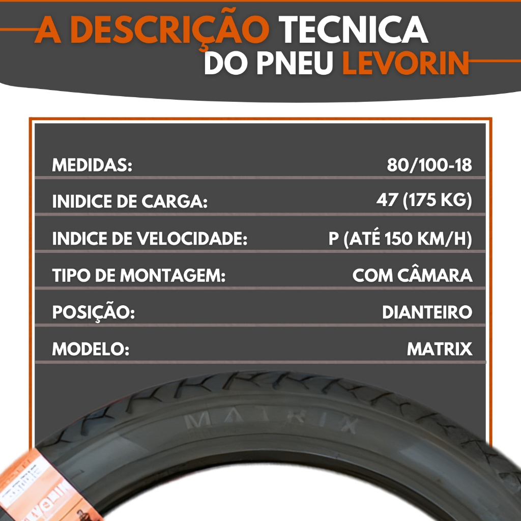 Pneu Diateiro CG 125/150 Titan/Fan/Start Levorin Matrix 80/100-18 47P