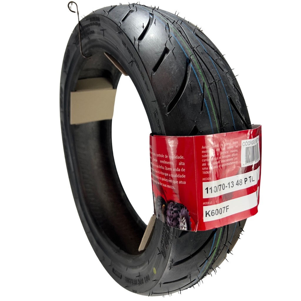 O Pneu 110/70-13TL 48P K6007F Scooter é ideal para quem roda diariamente na cidade e precisa de segurança, estabilidade e controle. Desenvolvido para aplicação dianteira, entrega excelente aderência em curvas e frenagens, inclusive em piso molhado. Seu desenho de banda de rodagem garante boa drenagem de água, maior previsibilidade na pilotagem e desgaste uniforme, aumentando a vida útil do pneu. É a escolha certa para quem busca confiabilidade no trânsito urbano, com ótimo custo-benefício. Produto novo, pronto para instalação. RESUMO DA FICHA TÉCNICA Produto: Pneu para Scooter Modelo: K6007F Medida: 110/70-13 Tipo: TL (sem câmara) Índice de carga: 48 (180 kg) Índice de velocidade: P (até 150 km/h) Aplicação: Dianteiro Condição: Novo SCOOTERS COMPATÍVEIS (verificar medida original): Honda PCX Honda Lead Yamaha NMax Dafra Citycom (algumas versões) Kymco Downtown Outros scooters com aro 13 dianteiro Importante: confirme sempre a medida no manual ou no pneu atual antes da compra.