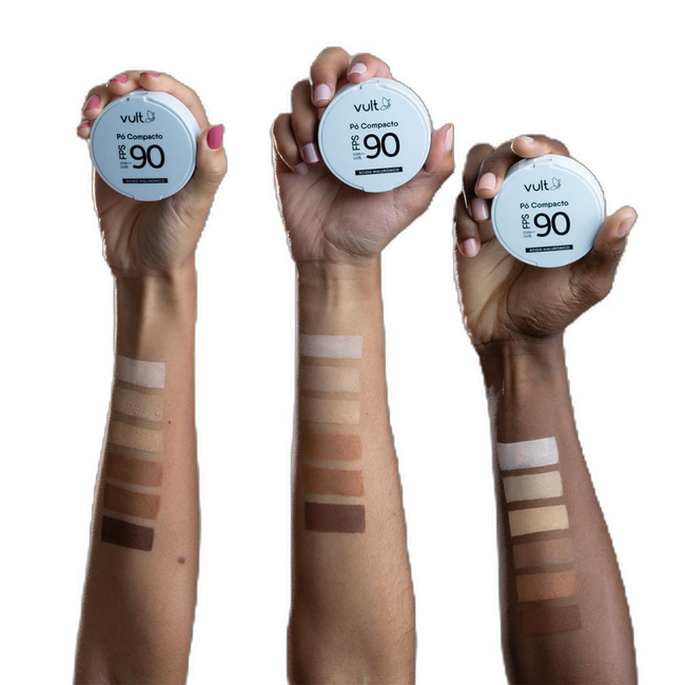 O Pó Compacto Facial Escuro Cor 5 FPS 90 Vultera o que faltava na sua rotina para finalizar e retocar a make com precisão, proteção e beleza. Este pó compacto Vult FPS 90 possui proteção UVA++ e UVB, cobertura média alta e efeito mate antibrilho, que proporcionam uma pele com acabamento natural e uniforme. Sua fórmula leve conta com Ácido Hialurônico, Vitamina E e Vitamina B3, ativos de skincare com ação prebiótica, antioxidante e antipoluição, além de oferecer proteção contra a luz azul. Confira mais benefícios deste pó compacto Vult escuro: - Controla o brilho da pele ao longo do dia; - Ação prebiótica; - Não Comedogênico; - Pode ser usado sozinho, para finalização da maquiagem ou para retoques; - Vegano e Cruelty Free. - Com toque aveludado. -Dermatologicamente testado. O pó compacto de intensidade de cor escura faz parte das 6 cores da linha para combinar com os diversos tons de pele, sendo uma ótima opção de pó compacto para a pele negra. Escolha a sua cor e conquiste o efeito desejado! Com um formato compacto, vem com espelho e esponja. É Excelente para usar no dia a dia, guardar na bolsa, mochila ou nécessaire e ter sempre por perto! **** IMPORTANTE: Não vendemos para contas CNPJ, evite que seu pedido seja cancelado! ****