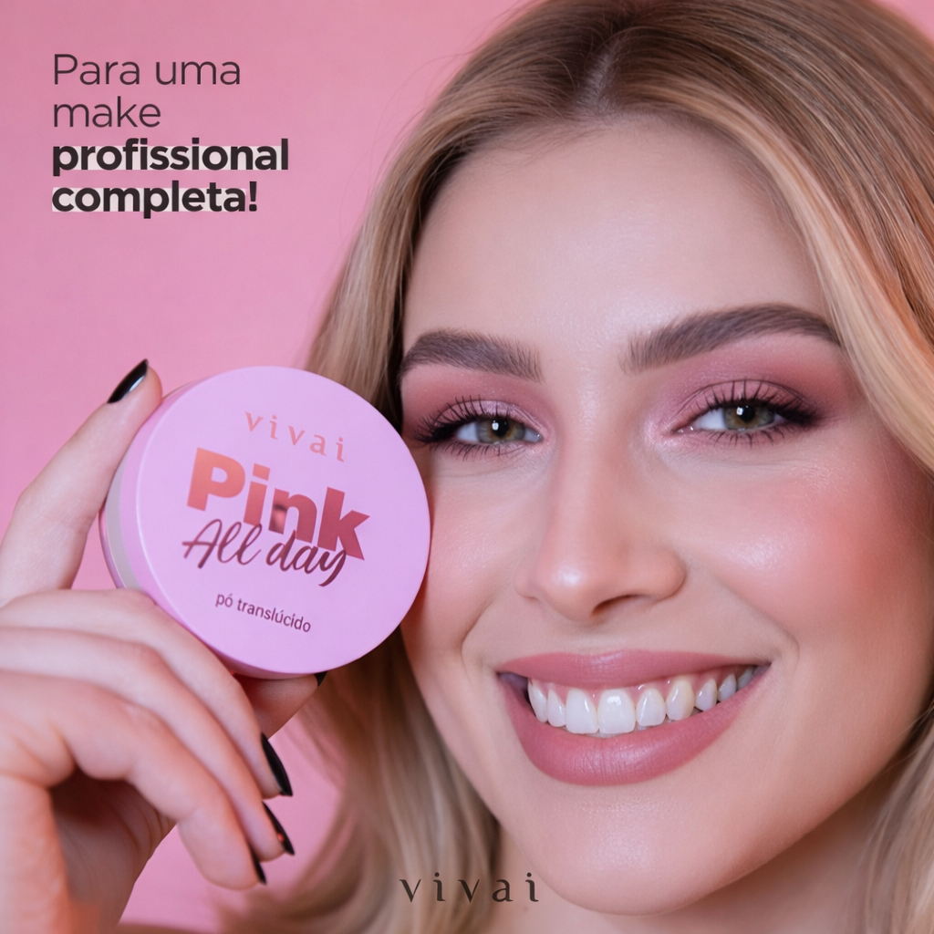 Pó Solto Vivai Rosa Pink All Day – Translúcido, Efeito Matte, Pele Aveludada e Sequinha, Acabamento Profissional